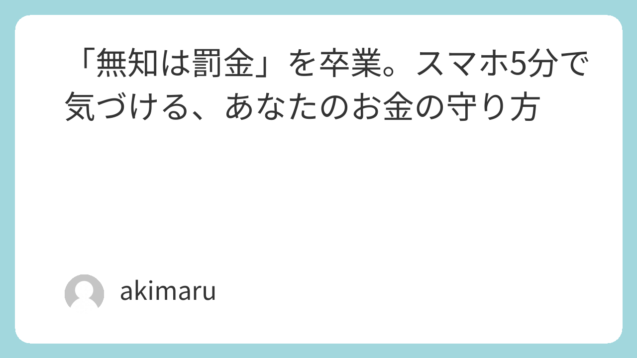 「無知は罰金」を卒業。スマホ5分で気づける、あなたのお金の守り方
